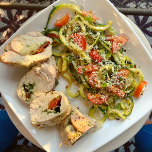 Sun-Dried Tomato Pesto Stuffed Chicken Breast & Zucchini Noodles 🍽